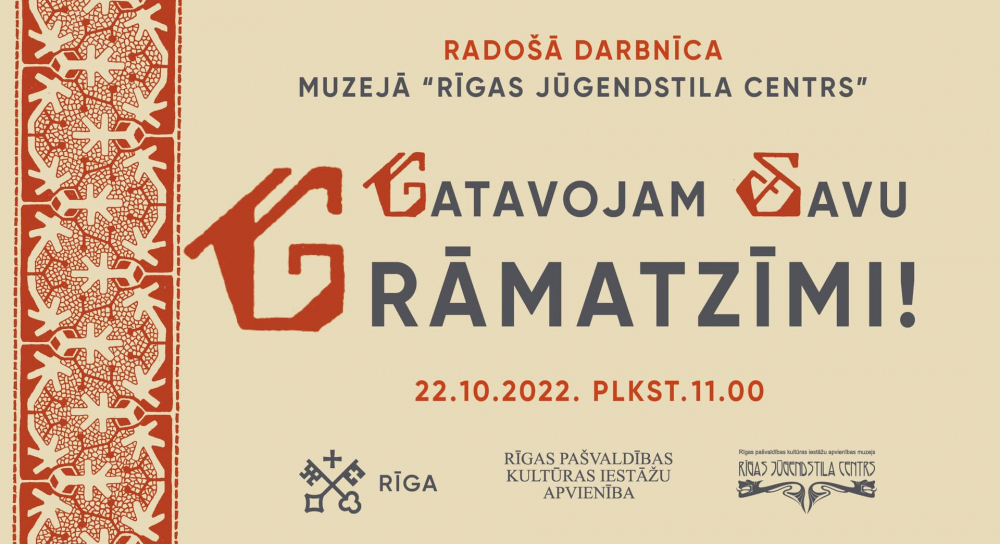 In the museum "Riga Art Nouveau Center" on October 22, 2022 at 11.00 creative workshop "Making your own bookmark!". During the workshop, participants will have the opportunity to get to know the letterforms of the Art Nouveau period and make a personalized bookmark with the letters and ornaments of the design created by Jūlijs Madernieks.