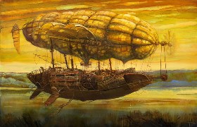 Modestas Malinauskas is Lithuanian painter, who has studied art in Art School of Kauna and industrial architecture in St. Petersburg Art Academy. Since 1989 artist every year reveals exhibitions in different cities in Lithuania, as well as his paintings have been displayed in Russia, United Kingdom, Germany, The Netherlands and USA. His paintings show fantasy landscapes, dream boats and airships, his artwork inspires a lot of stories.