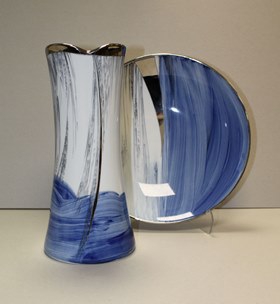The artwork presented in the exhibition – painted porcelain vases and plates – have been created over a year period and show the artist’s versatile creativity.