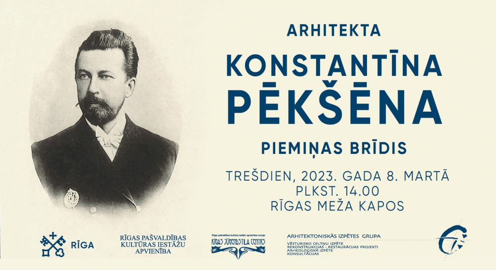 With a moment of remembrance on March 8 at 14.00 in Riga Meža Cemetery, museum "Riga Art Nouveau Center" invites you to celebrate the 164th anniversary of the Latvian architect Konstantīns Pēkšēns. Relatives of Konstantīns Pēkšēns and members of the student corporation "Selonija" founded by the architect will gather at the architect's resting place. All interested parties are invited to commemorate the great architect.